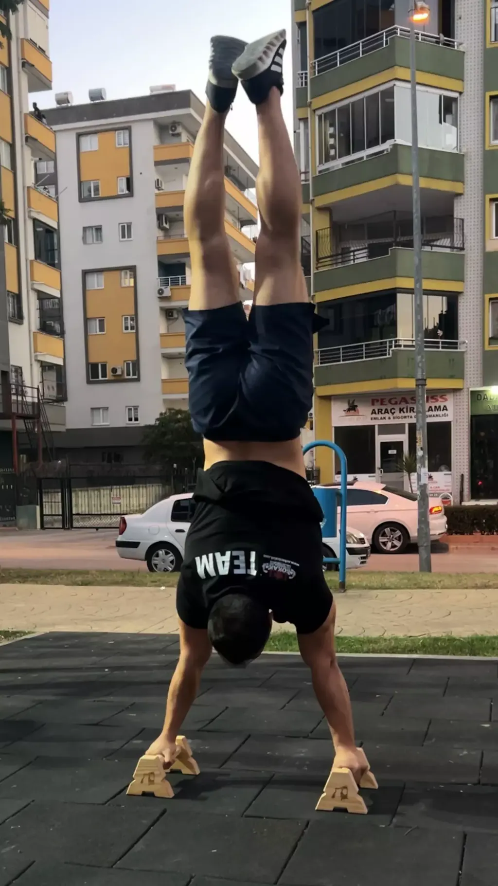Wooden Parallettes W10 are compact and portable piece of equipment designed for athletes training with bodyweight exercises at home or outdoors. They provide excellent support for calisthenics movements such as push-up, l-sit, planche, and handstand.